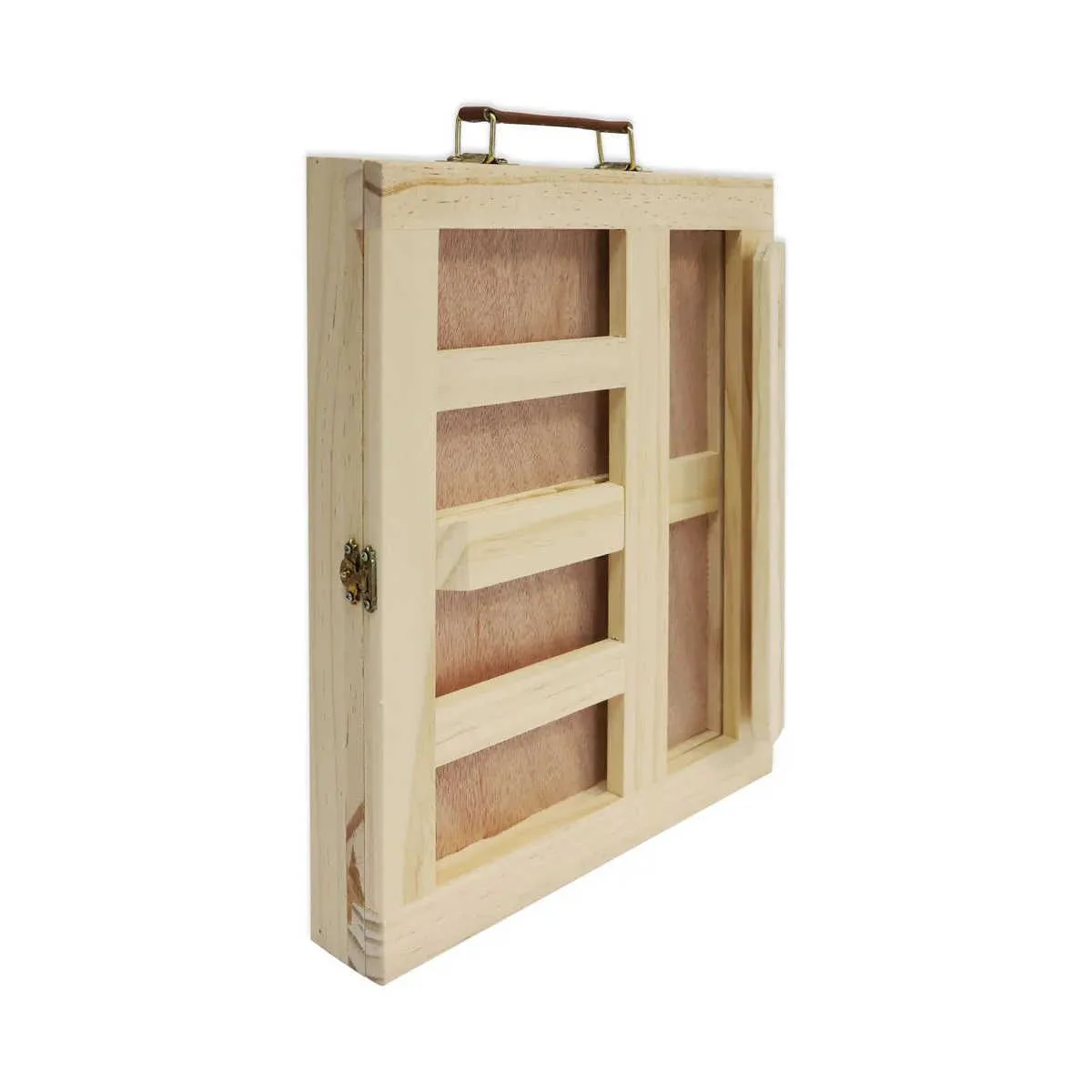 The Mont Marte Pine Table Easel is a small sturdy table easel with an adjustable canvas support and a small sliding drawer for small accessories. It folds up for easy storage and has a convenient carry handle for transporting. Pine wood hand finished with oil, and brass plated steel fittings.     Â